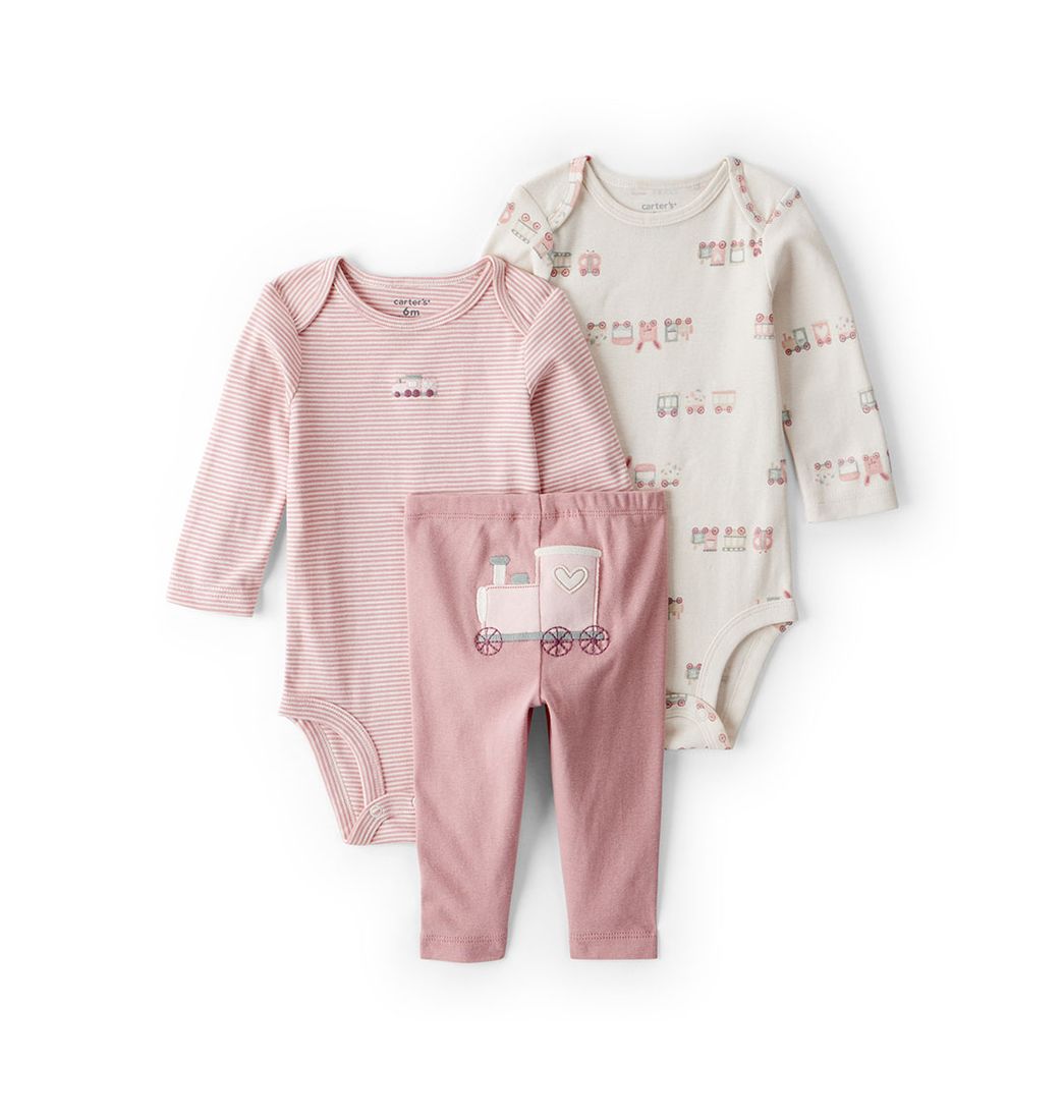 Set 2 Bodies Manga Larga y Pantalón Rosado Bebés Niñas - Carter's