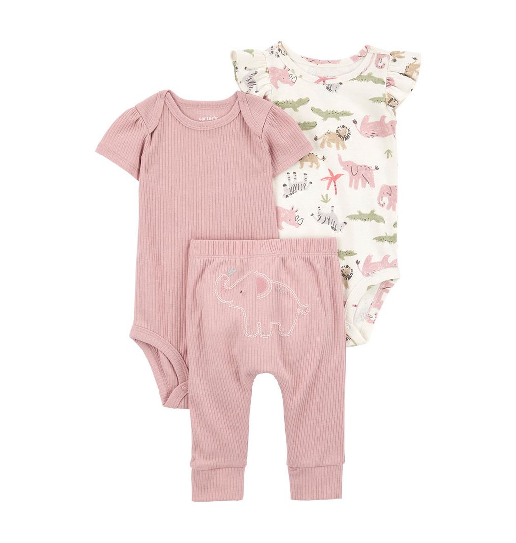 Set 2 Bodies Surtidos y Pantalón Rosa Bebés Niñas - Carter's