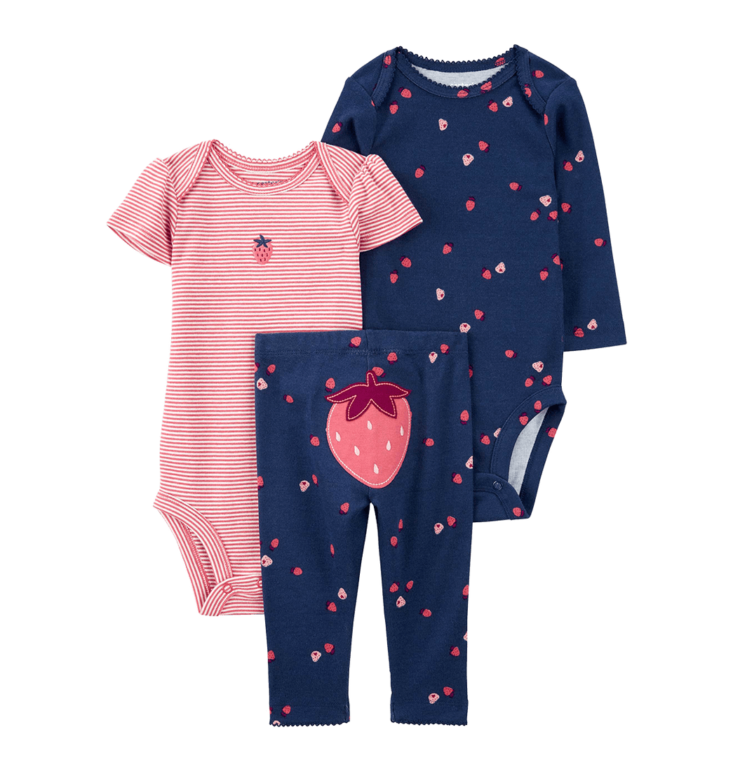 Incluye 1 Body Manga Larga, 1 Body Manga Corta y Pantalón.