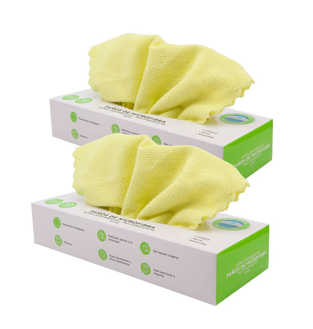 Set 2 Cajas Paños De Microfibra 10Unidades 30x30Cm Amarilla Multiusos - Essenza