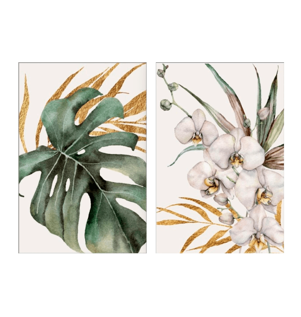 Set 2 Cuadros Planta Orquídea Gold 120x90x5cm - Ekonomodo