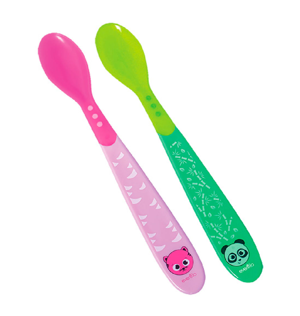 Set 2 Cucharas Flexibles Rosa y Verde - Evenflo