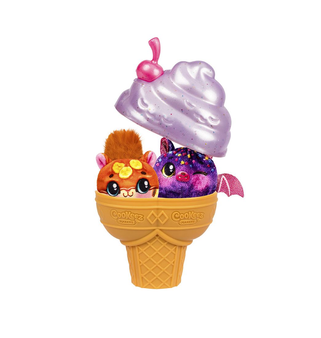 ¡La diversión viene en pareja! Con el nuevo Cookeez Makery Yum Yumz Twin Pack, levanta la tapa del cono de helado, agrega los ingredientes, presiona la cereza y descubre dos adorables plush perfumados escondidos en su interior.