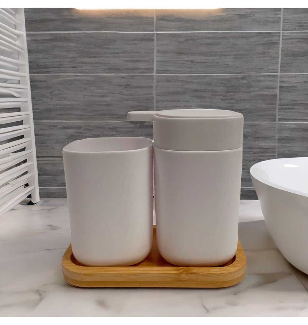 Set 3 Accesorios de Baño con Bandeja Bamboo Blanco - Ikhome