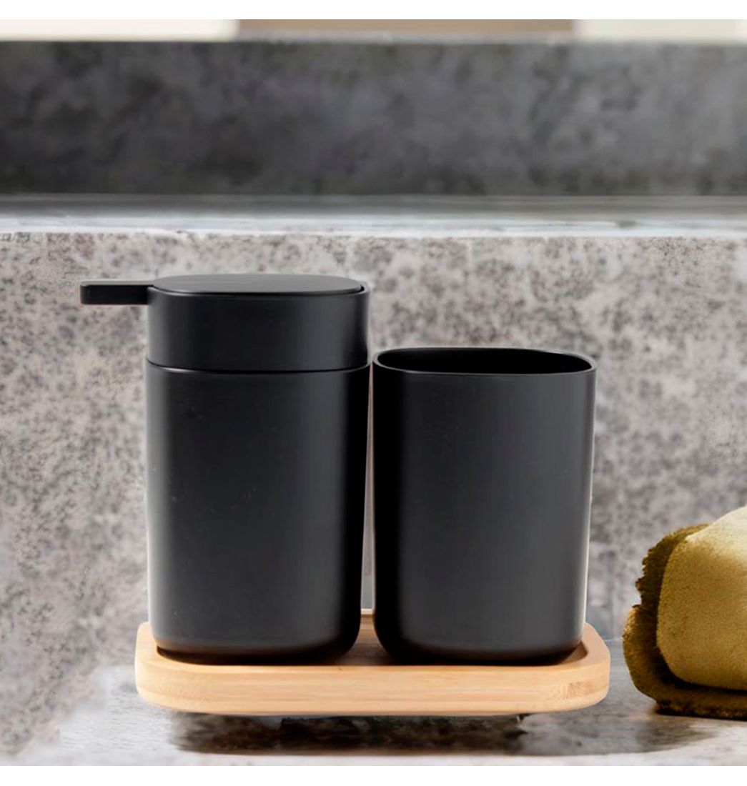 Set 3 Accesorios de Baño con Bandeja Bamboo Negro - Ikhome