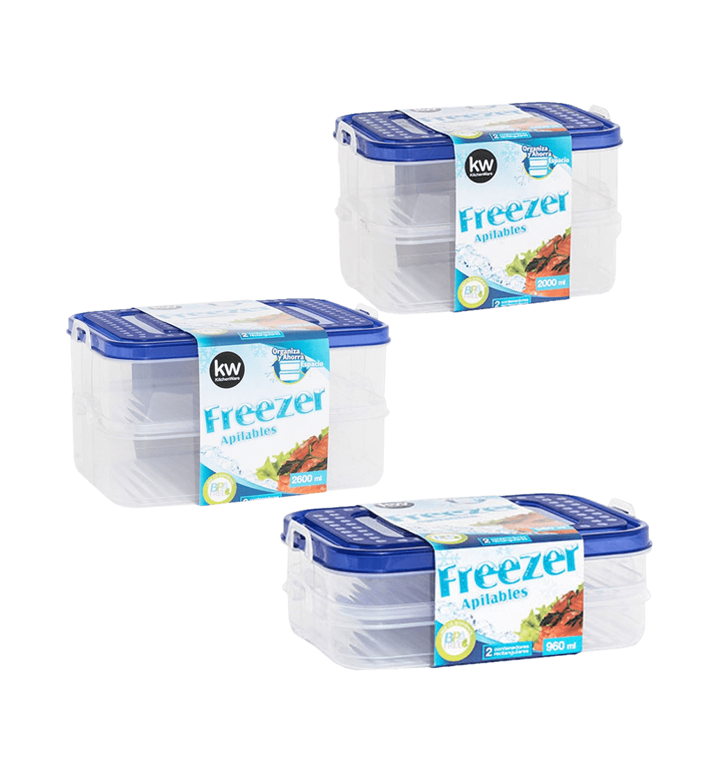 El Set 3 Juegos de Contenedores Plásticos Freezer de la marca KW, son perfectos para el congelador, adicional están elaborados en material de excelente calidad y le dan un toque de estilo a tu cocina.