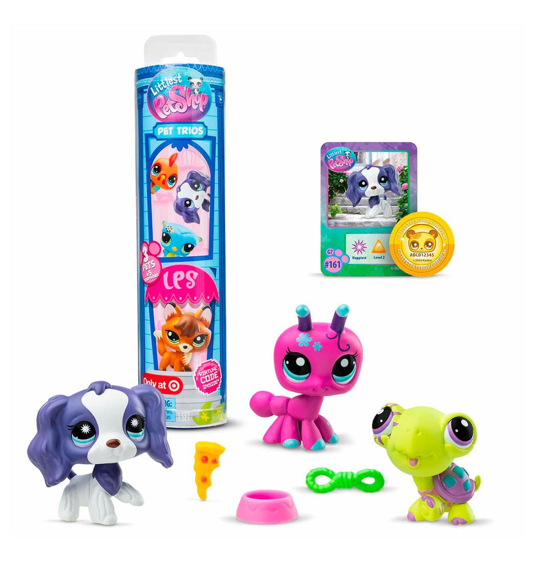 ¡Prepárate para el triple de sorpresas con los tubos ciegos de tríos de mascotas de Littlest Pet Shop, serie 3! Cada tubo ciego contiene uno de los tres tríos temáticos (mascotas del bosque, mascotas del granero o mascotas del patio trasero) ¿Desenvolverás un conjunto de amigos del bosque como un búho, un ciervo y un zorro? ¿O tal vez descubrirás un equipo de granja con un caballo, un gallo y un terrier?