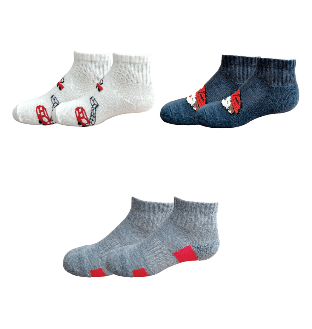 Dale un toque de ternura y color al outfit de tu pequeño con este encantador set de 3 medias para niños, las cuales están confeccionadas en materiales suaves, transpirables y cómodos, brindan una sensación agradable durante todo el día. Además, sus diseños llenos de estilo las convierten en el complemento perfecto para cualquier ocasión. ¡Comodidad, diversión y calidad en un solo set, anímate a llevarlas ahora!.