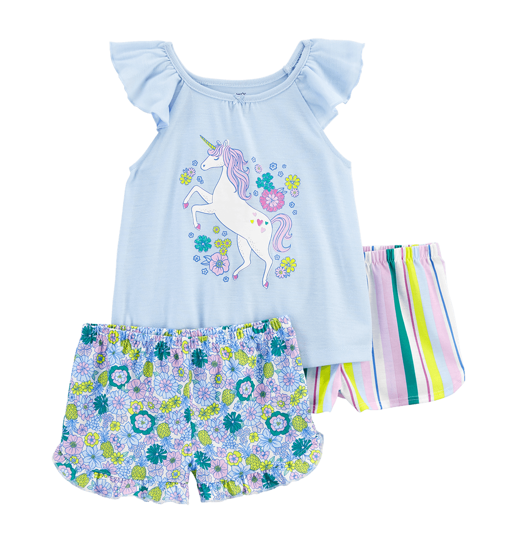 Set 3 Piezas Camiseta Manga Corta Unicornio y Shorts Niñas - Carter's