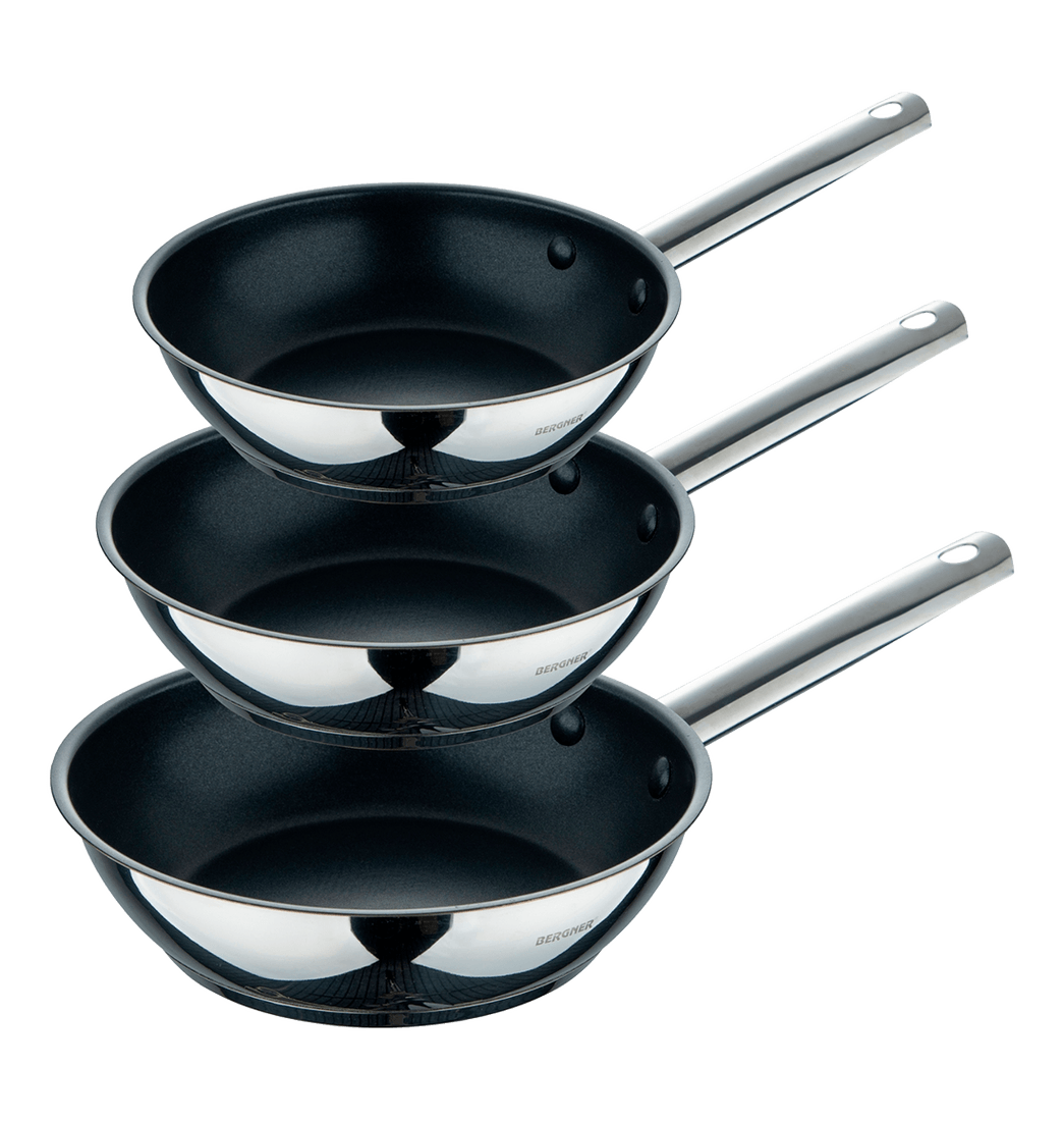 Set 3 Sartenes Gourmet Acero Inoxidable 20, 24 y 28 cm - Bergner