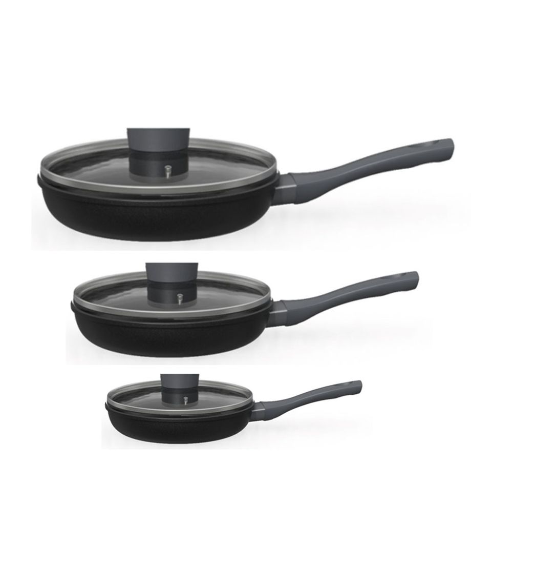 Set 3 Sartenes Grey con Tapa Aluminio Forjado Negro 20, 24 y 28cm - KW