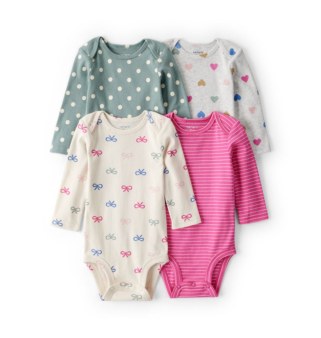 Set 4 Bodies Manga Colores Diseños Surtidos Bebés Niñas - Carter's