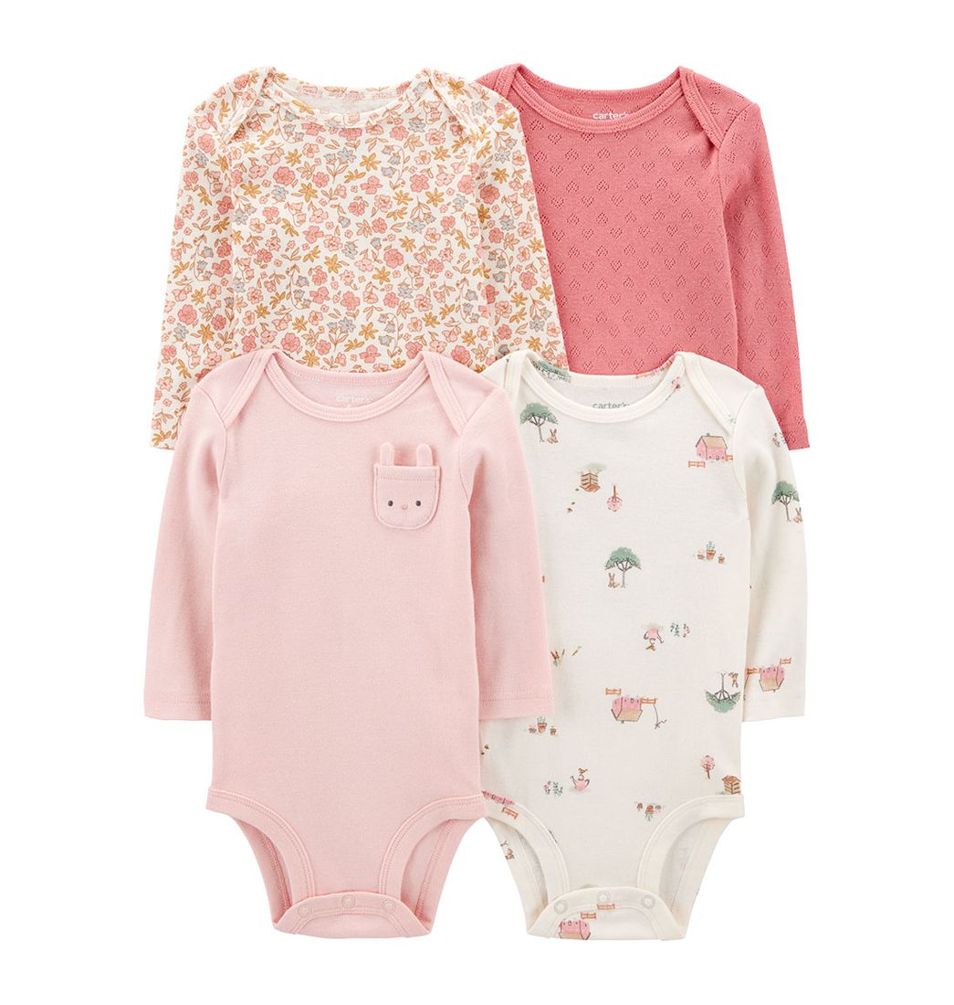 Set 4 Bodies Manga Larga Diseños Surtidos Bebés Niñas - Carter's