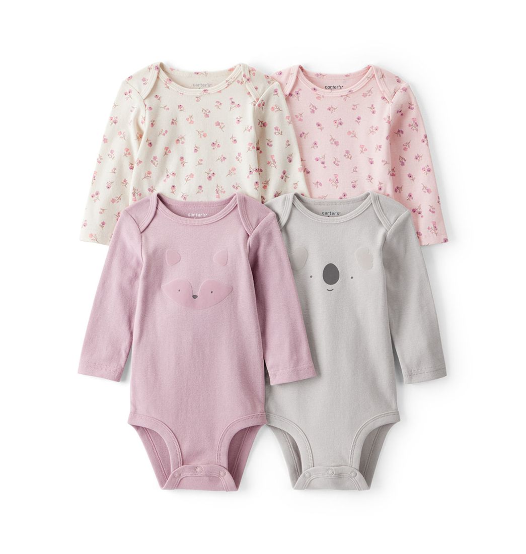 Set 4 Bodies Manga Larga Diseños Surtidos Bebés Niñas - Carter's