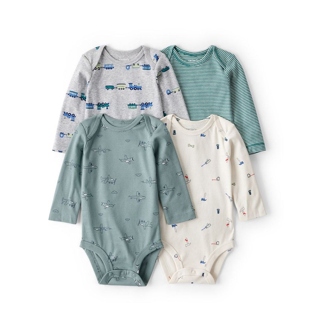Set 4 Bodies Manga Larga Diseños Surtidos Bebés Niños - Carter's
