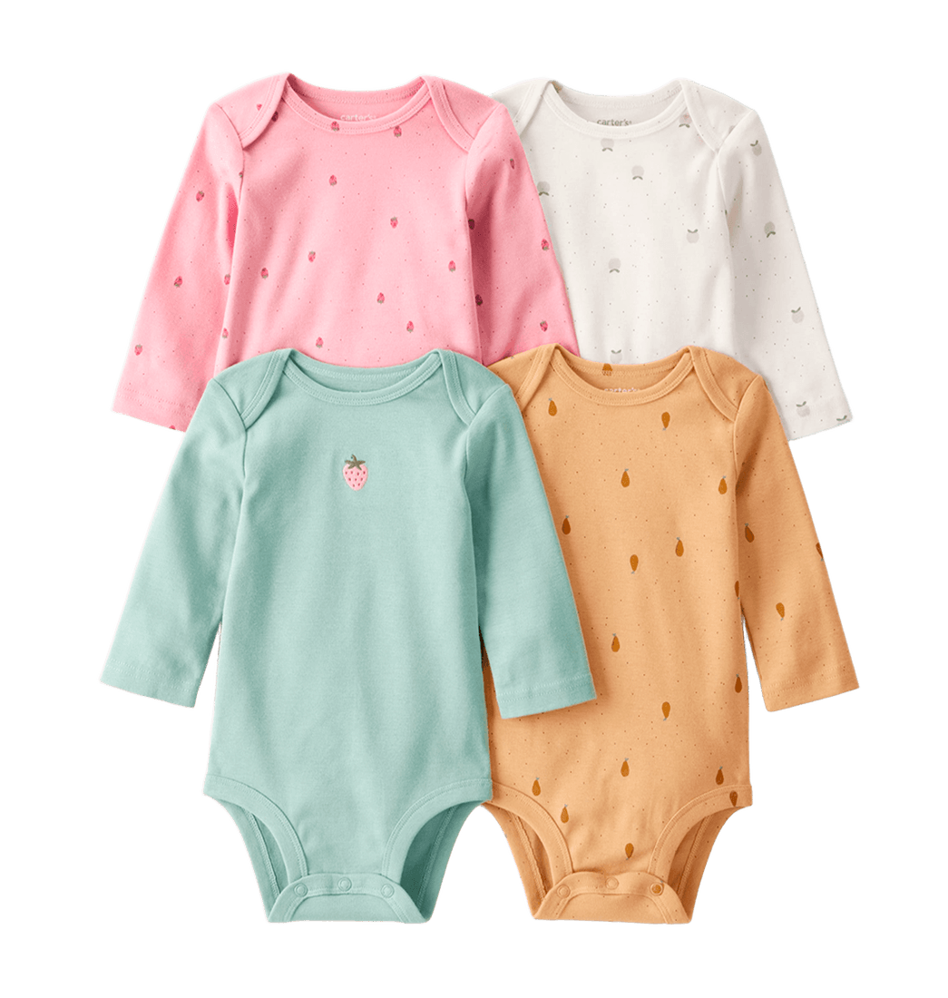 Set 4 Bodies Manga Larga Frutas Bebés Niñas - Carter's