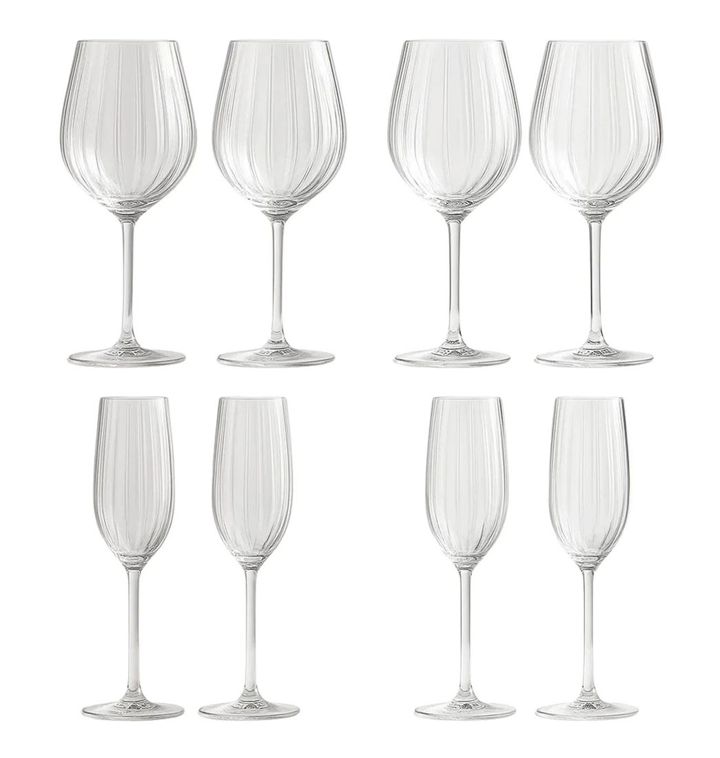 Set 4 Copas Vino Blanco Plisse 380ml y 4 Copas Champagne Plisse 210ml - Royal Leerdam