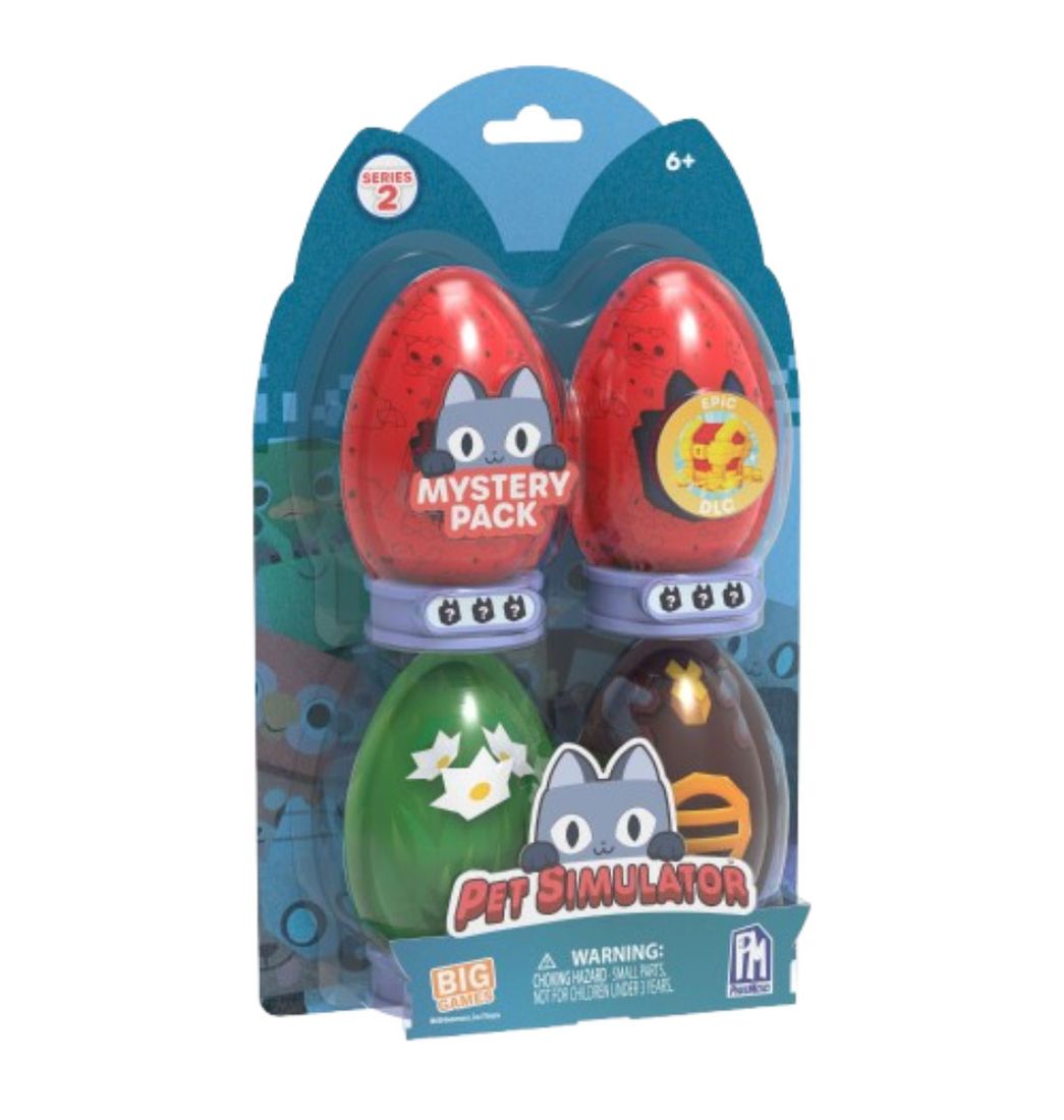 Incuba tus huevos y descubre tu nueva mascota con el paquete Mystery Pet 4 de la exitosa serie de juegos Pet Simulator. ¡Cada huevo revelará 4 de 20 mascotas de la Serie 2! Todos los paquetes incluyen un valioso código DLC, un soporte y accesorios para que tu nueva mascota sea aún más especial. Construye tu colección de mascotas hoy. ¡Nunca se sabe cuándo encontrarás una rara mascota arcoíris, dorada o de materia oscura!