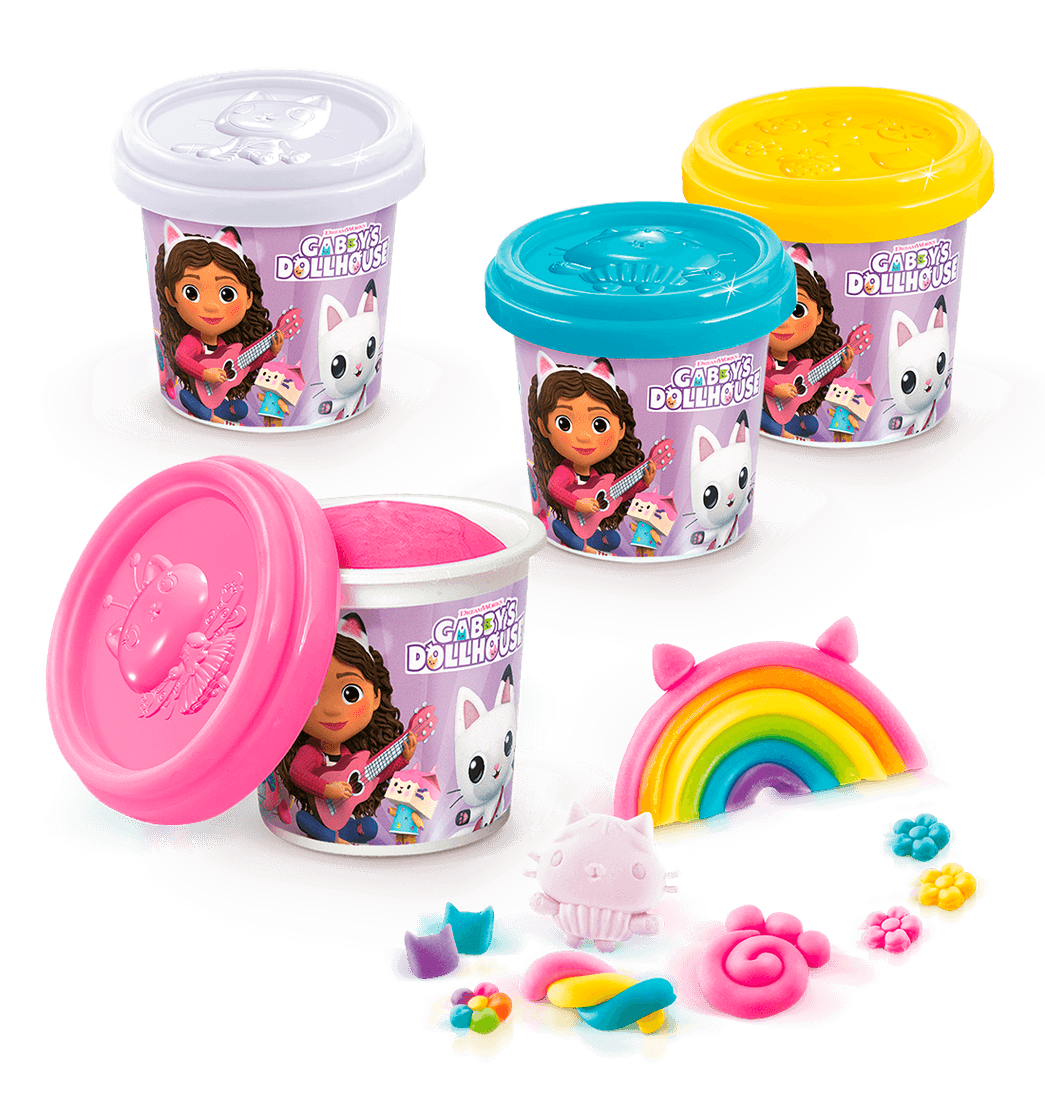 ¡Llena tu mundo de color con el Playset de Plastilina 4 Potes de Arco Iris de Gabby Dollhouse! Este set incluye cuatro vibrantes colores de plastilina para que tu pequeña pueda crear cualquier cosa que imagine. Con su suave textura y sus brillantes colores, esta plastilina es perfecta para proyectos creativos y horas de diversión.