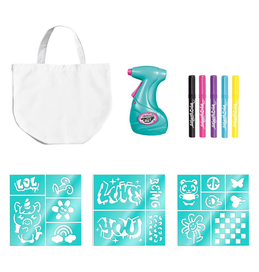 Incluye 5 colores, herramienta Air Brush, plantillas y bolso.