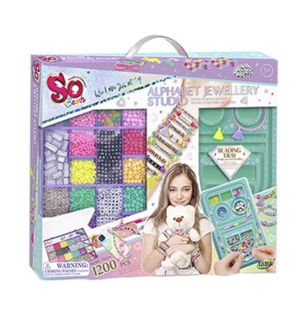 Los sets de Joyería DIY permiten a niños y niñas diseñar su propia joyería. Estos juegos son una actividad entretenida para desarrollar la motricidad fina, la composición artística y la creatividad. Este set es ideal para crear lindas joyas de juguete gracias a los accesorios incluidos como recipiente reutilizable, cuentas, cuentas del alfabeto, pulseras, cordones elásticos, borlas, bandeja para abalorios, accesorios y manual.