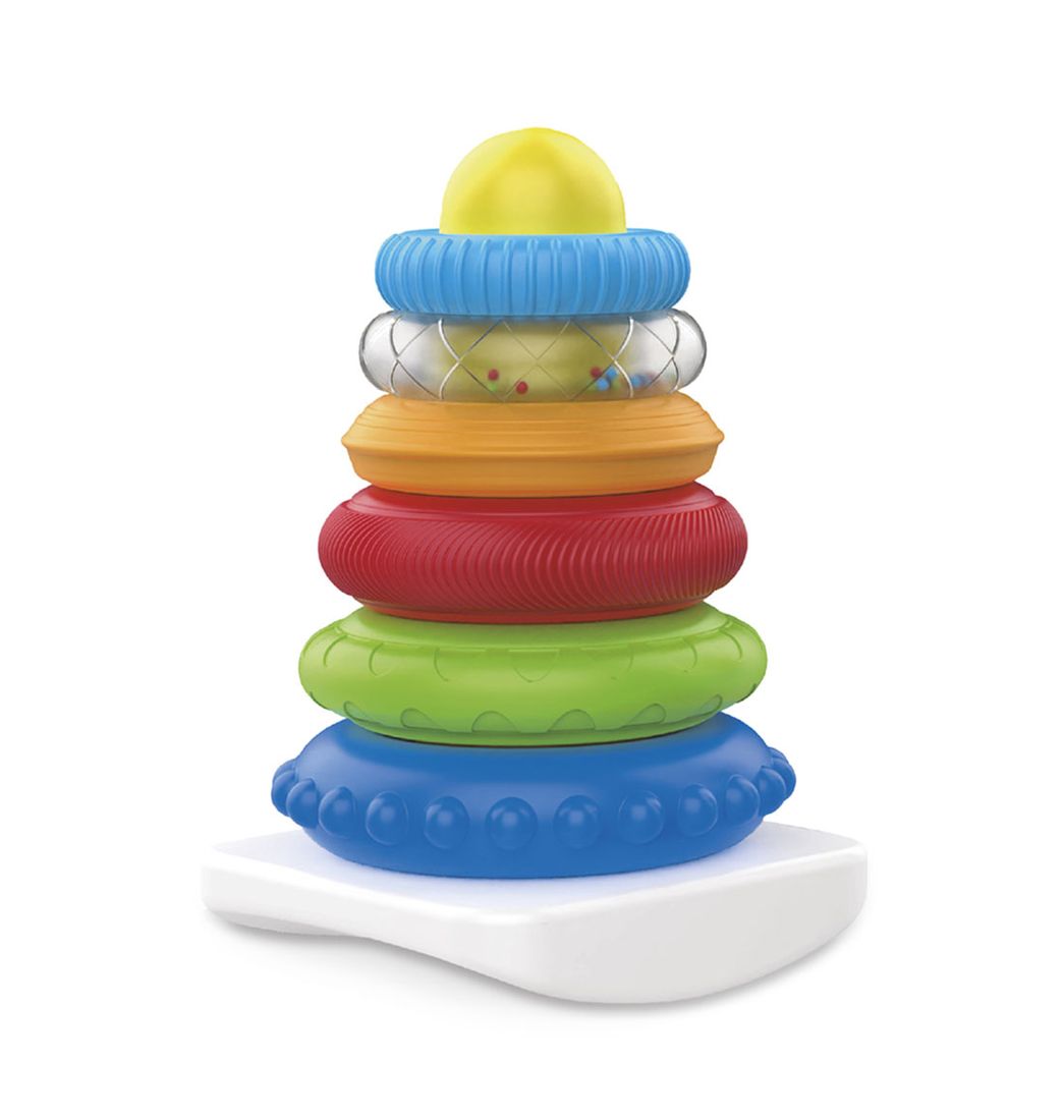 Incluye 6 aros de colores y base para apilar.