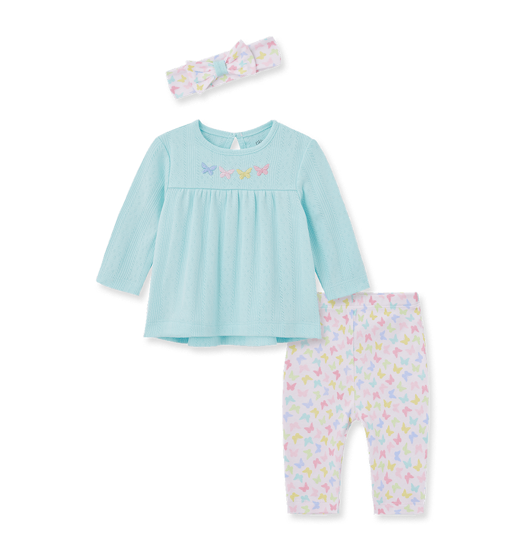 Set Blusa Azul, Pantalón y Balaca Mariposas Niñas - Little Me
