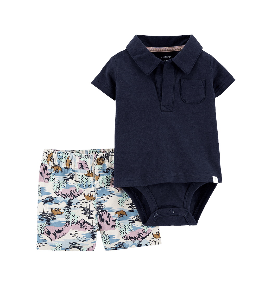 Set Body Azul y Short Estampado Niños - Carter's
