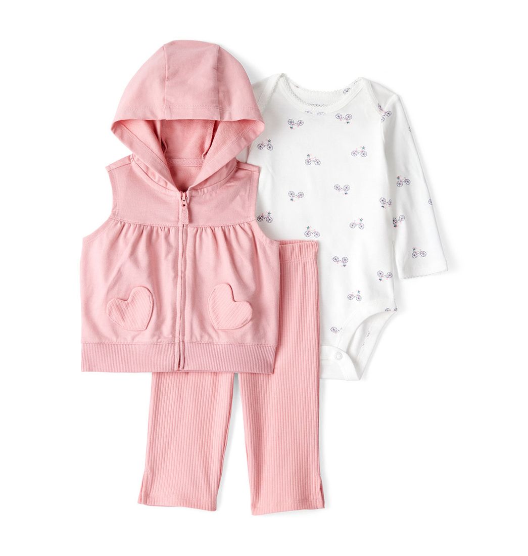 Set Body Estampado, Chaleco Rosado y Pantalón Bebés Niñas - Carter's