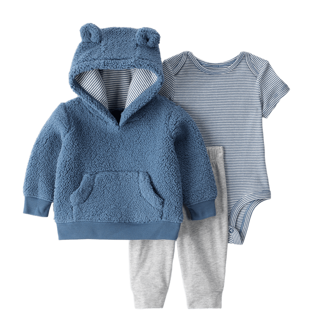 Incluye Bodie Manga Corta, Buzo con Capota y Pantalon.
