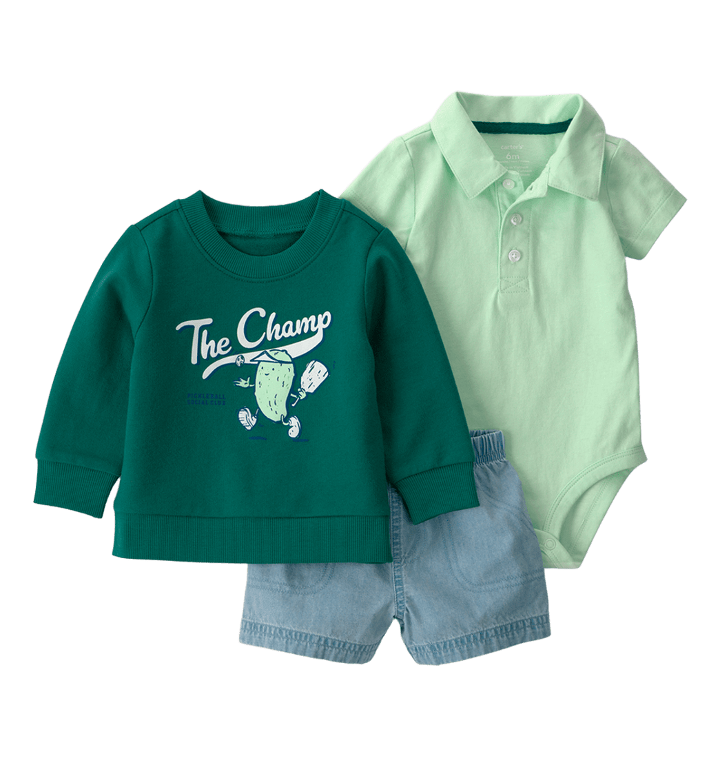Set Body Manga Corta, Buzo Verde y Short Bebés Niños - Carter's