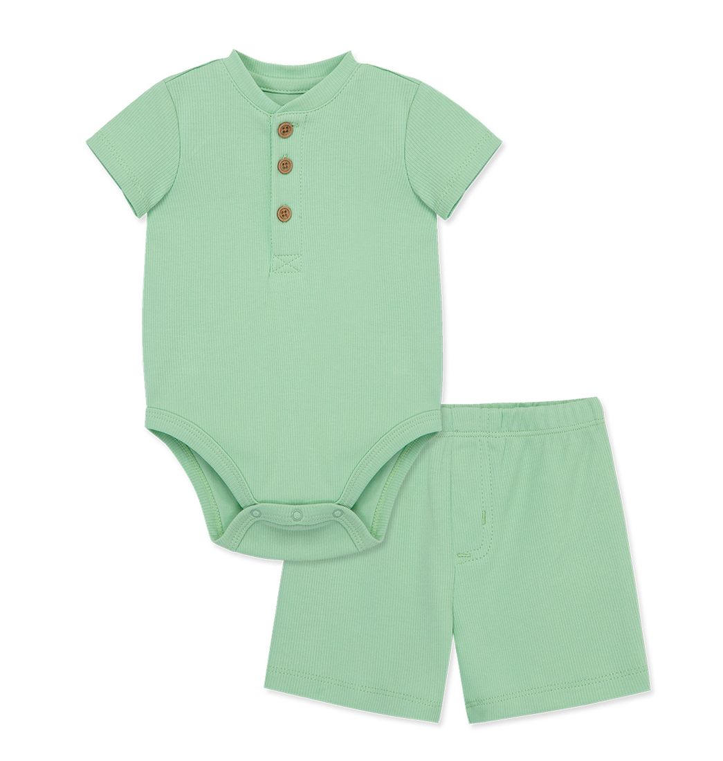 Set Body Manga Corta y Short Verde Bebés Niños - Little Me