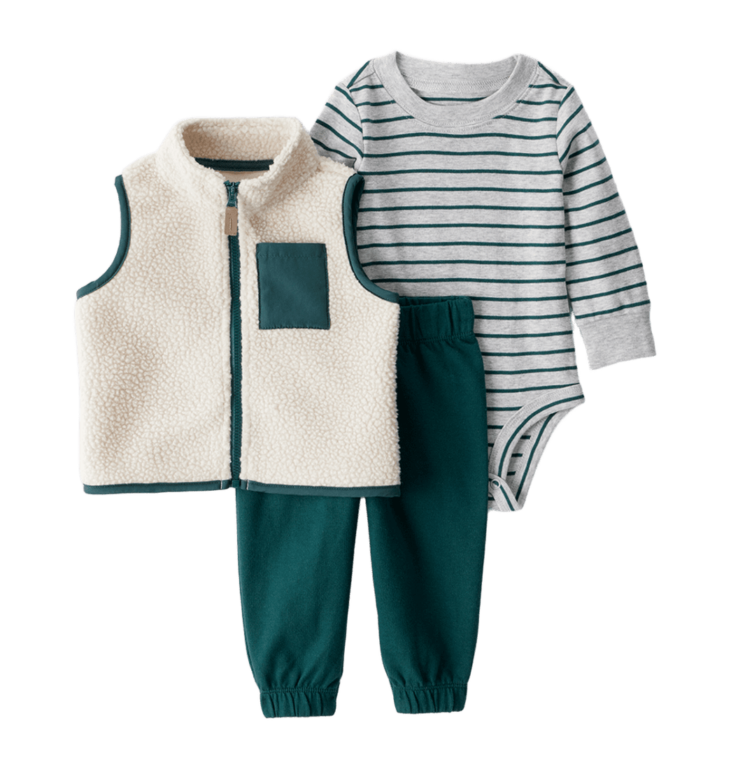 Set Body Manga Larga, Chaleco y Pantalon Verde Bebés Niños - Carter's