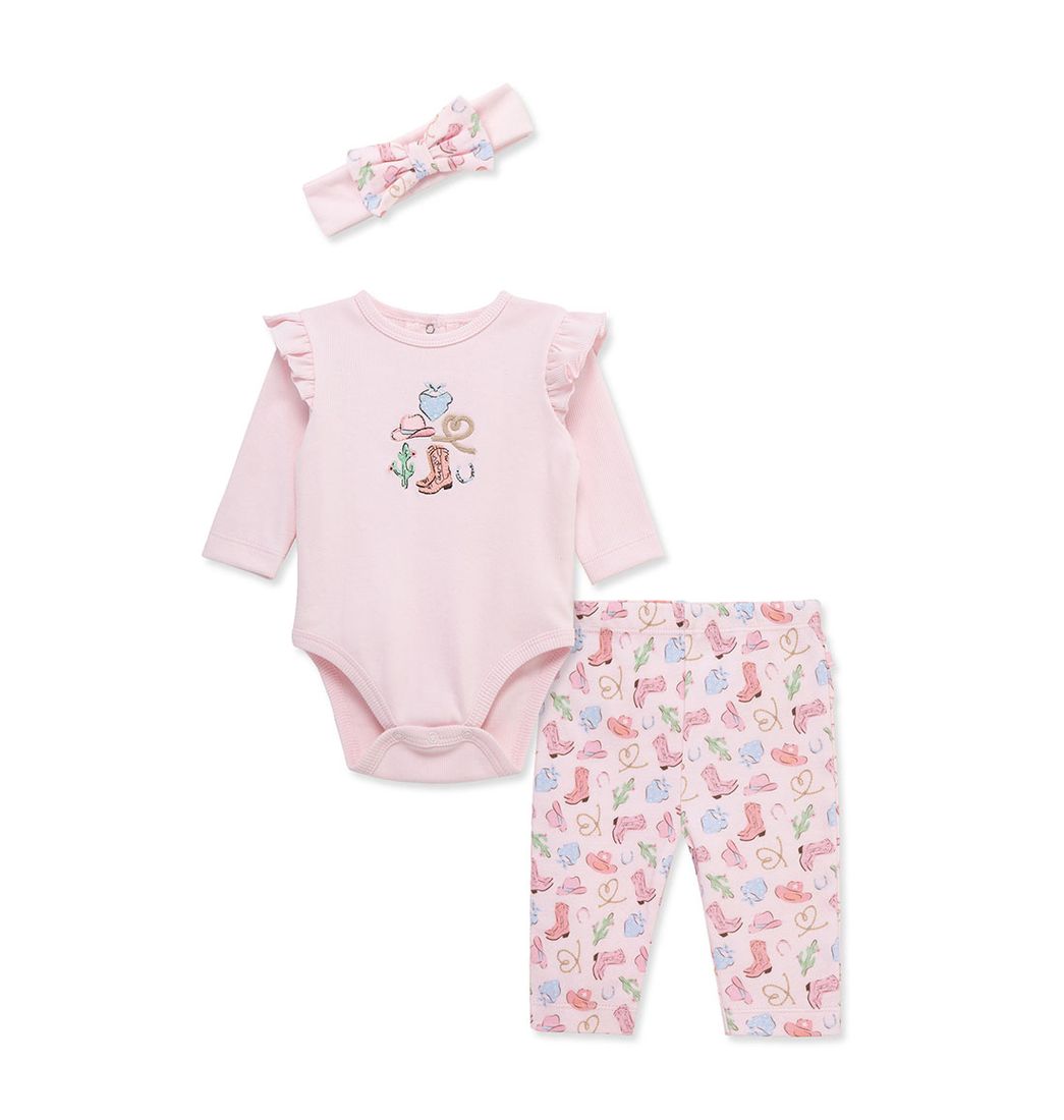 Set Body Manga Larga, Legging y Balaca Rosado Niñas - Little Me