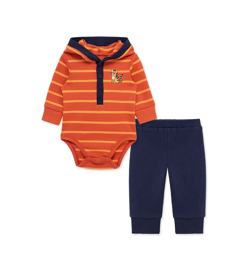 Set Body Manga Larga y Pantalón Naranja Niños - Little Me