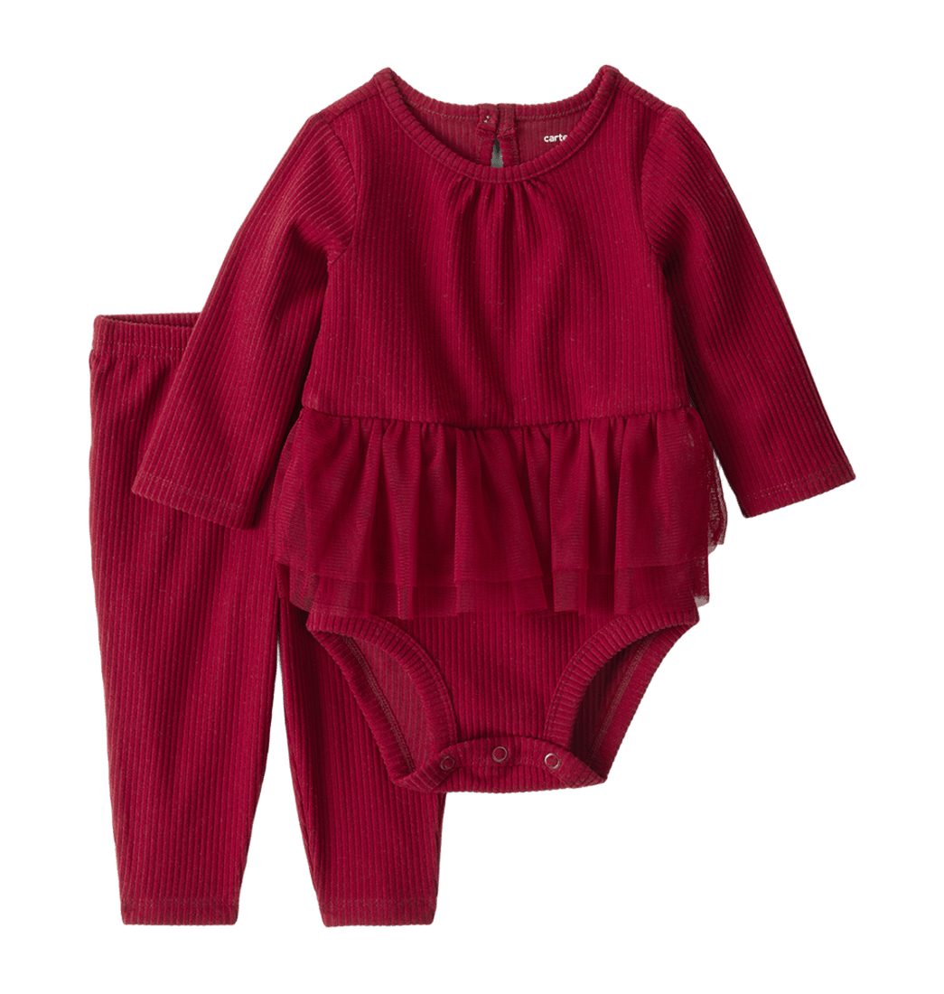 Set Body Manga Larga y Pantalon Rojo Bebés Niñas - Carter's