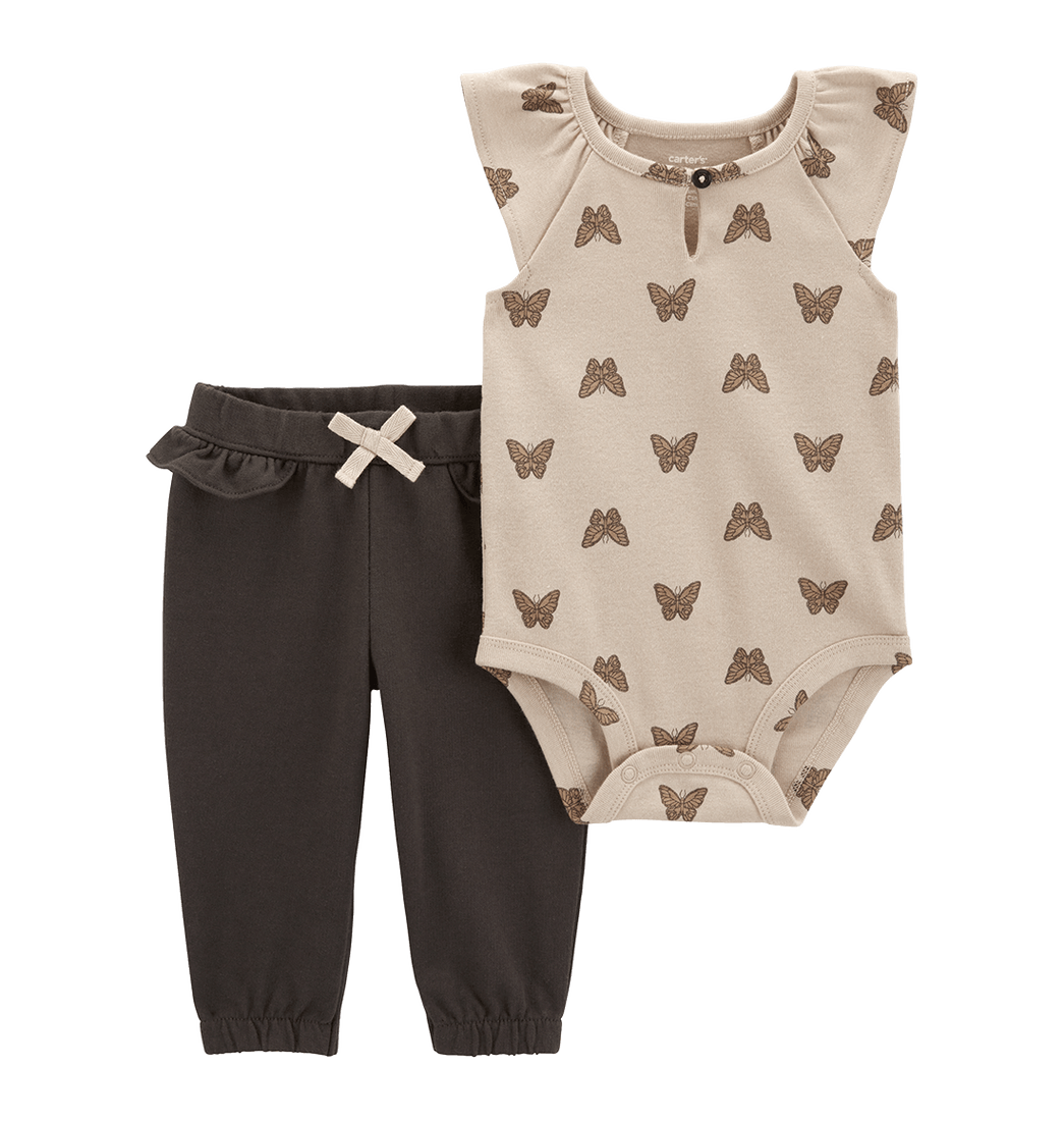Set Body Mariposas y Pantalón Café Bebés Niñas - Carter's