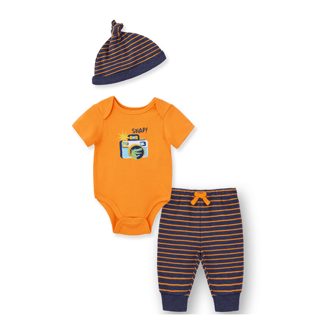 Set Body Naranja, Pantalón Rayas y Gorro Niños - Little Me
