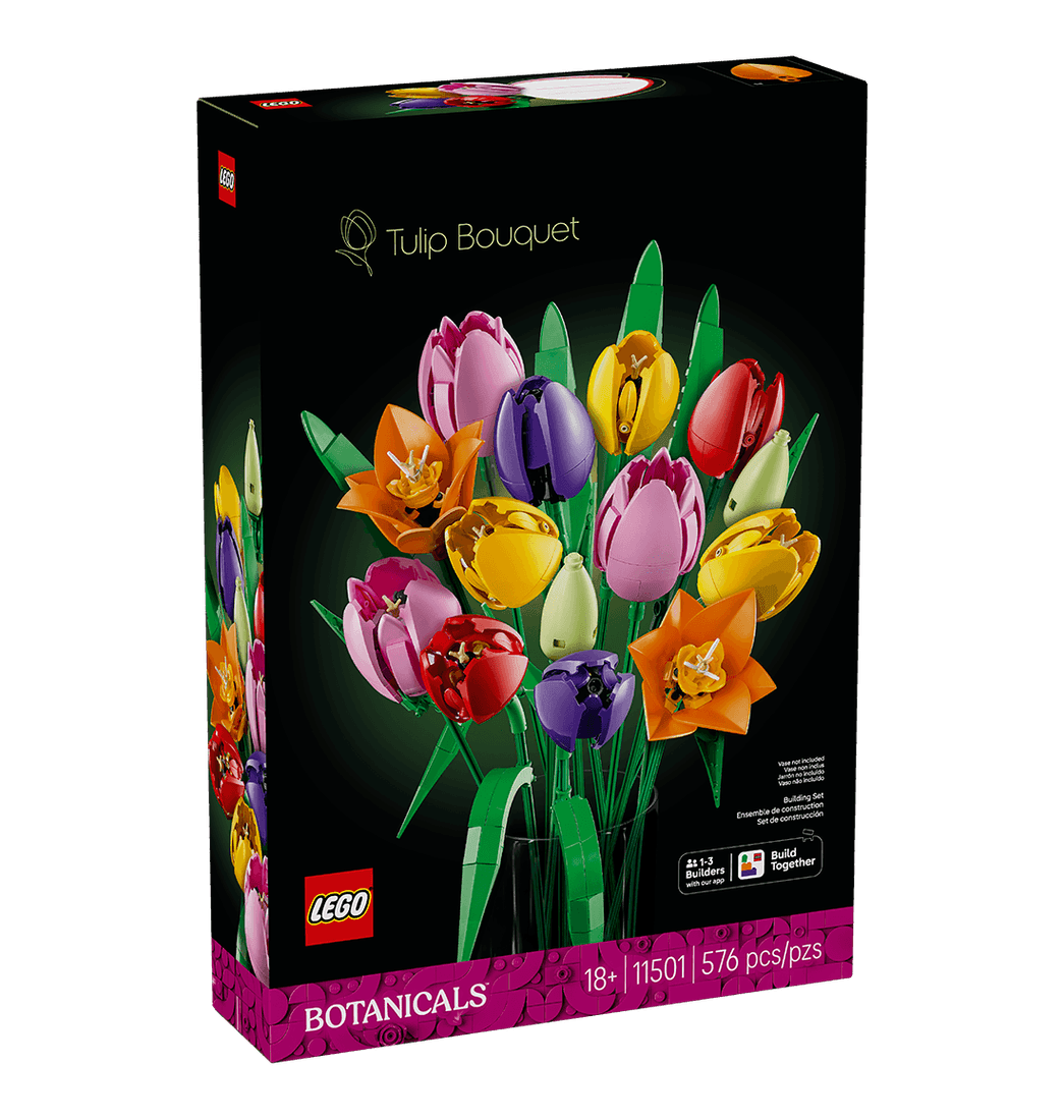 El set incluye tallos ajustables que te permiten decidir la longitud y la posición de cada tulipán para crear un arreglo LEGO personalizado. Una vez terminado, el divertido proyecto se convierte en una impresionante pieza de decoración floral que aportará color a cualquier espacio.