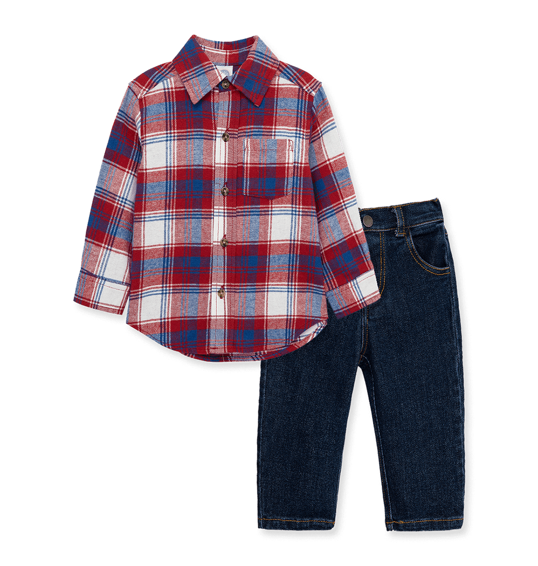 Set Camisa Cuadros y Pantalón Azul Oscuro Bebés Niños - Little Me