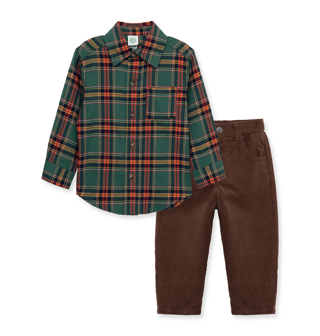 Set Camisa Cuadros y Pantalón Café Bebés Niños - Little Me