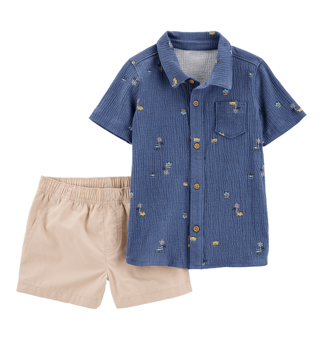 Set Camiseta Azul y Short Beige Niños - Carter's