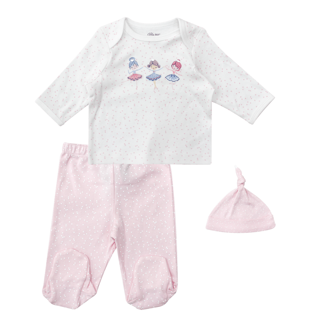 Set Camiseta Ballet, Pantalón Rosado y Gorro Bebés Niñas - Little Me