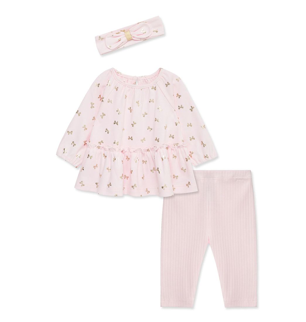 Set Camiseta Manga Larga, Pantalón y Balaca Rosado Estampado Niñas - Little Me