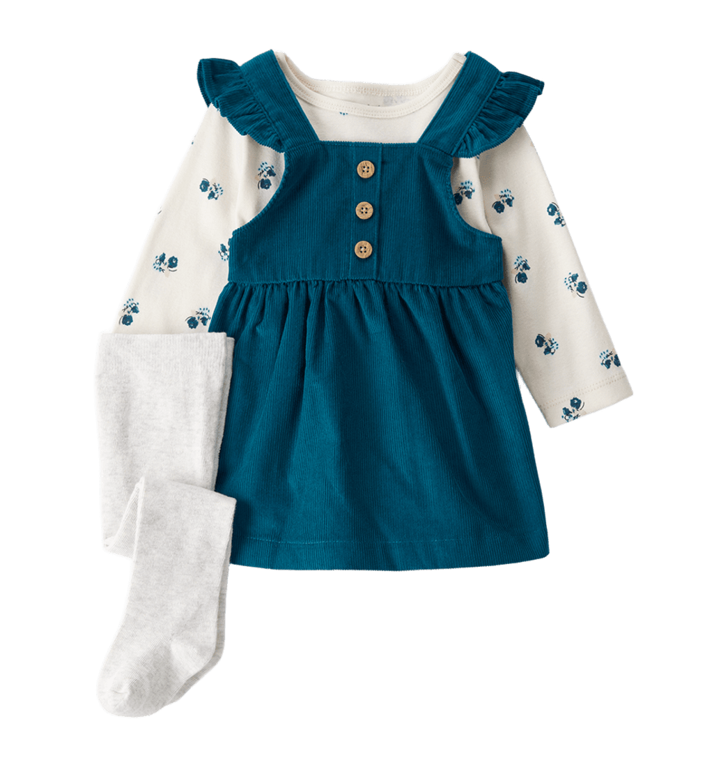Set Camiseta Manga Larga, Vestido Azul y Medias Bebés Niñas - Carter's