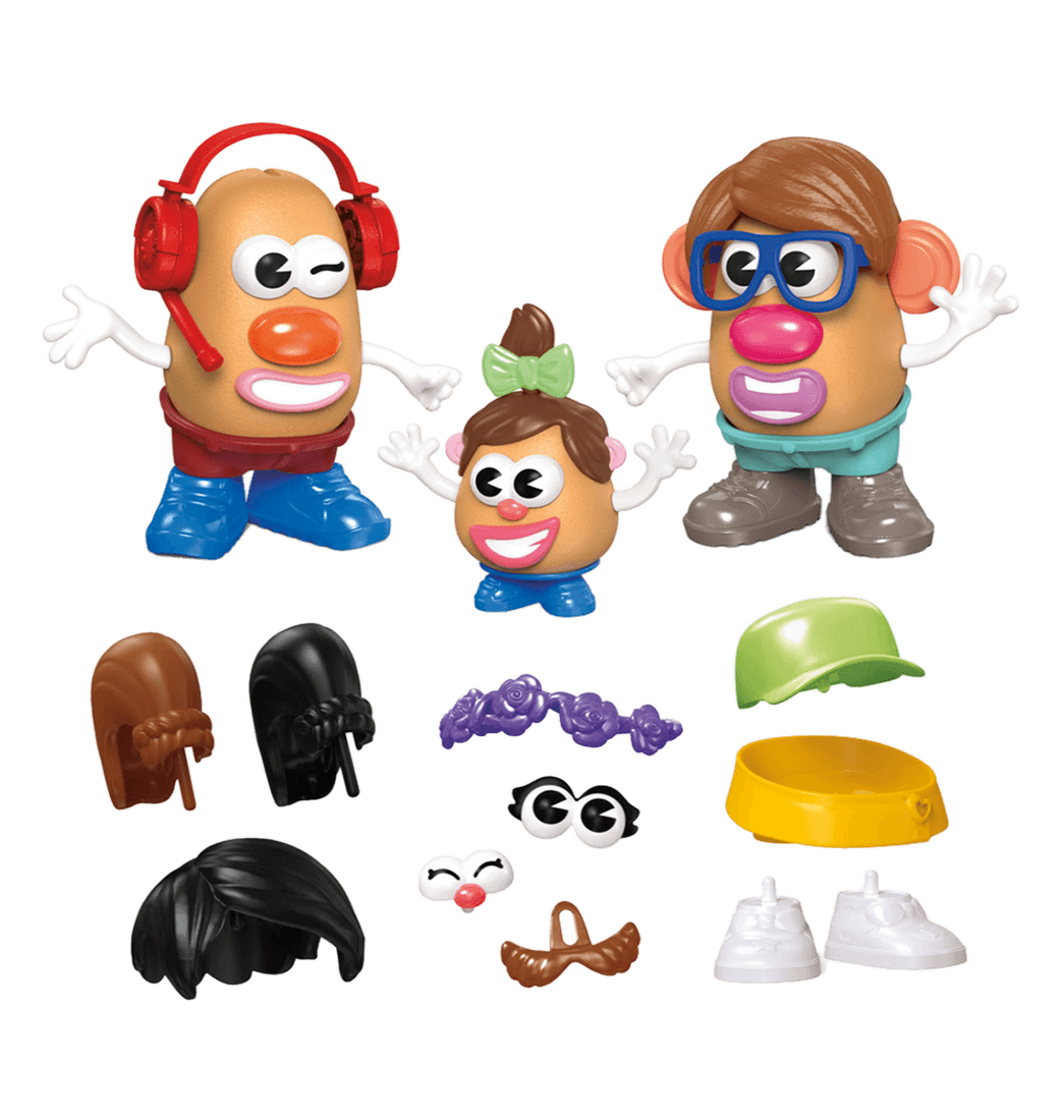 ¡Descubre un sinfín de posibilidades con el set Crea tu familia Potato Head! A los pequeñines les encantará inventar familias y personajes con los 2 cuerpos de papa grandes, el cuerpo de papa pequeño y las 41 piezas que se pueden colocar en ellos para hacer todo tipo de combinaciones.
