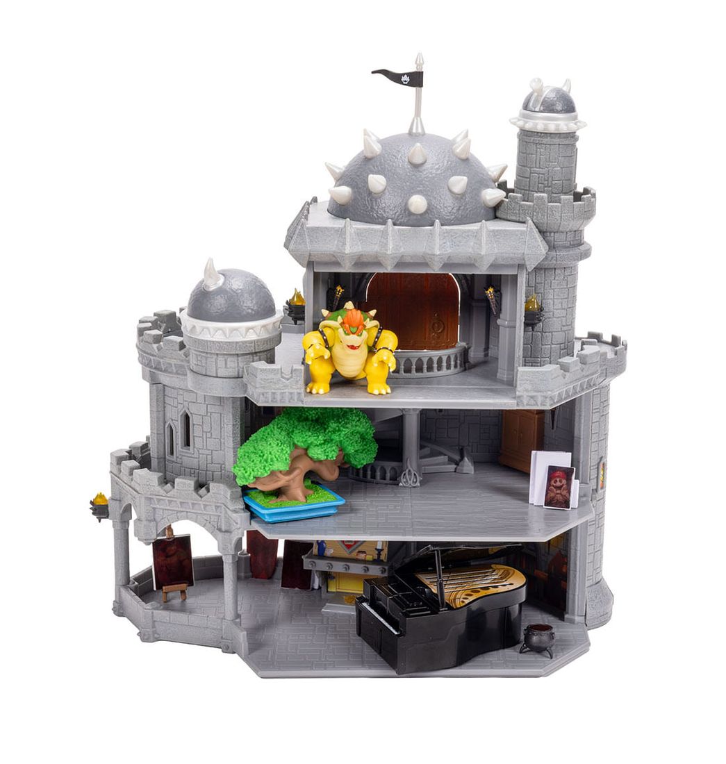 Incluye una torre superior giratoria, puerta abatible y chimenea. Es el escenario perfecto para que Bowser se divierta tocando su piano de dos botones con sonido tipo campanilla, pintando con los múltiples cuadros que se revelan con calor, o preparando algo en su caldero y cuidando su jardín con bonsái.