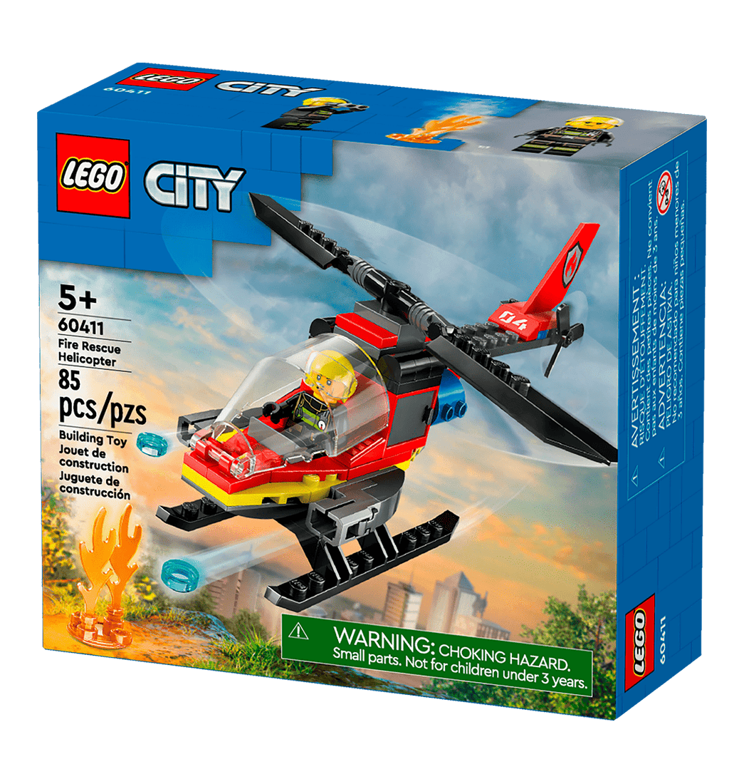 ¡Abróchate el cinturón y prepárate para vivir apasionantes misiones sofocando incendios con el Helicóptero de Rescate de Bomberos LEGO City! Saca el casco de bombero y los prismáticos del compartimento, súbete a la cabina y haz girar los rotores para ascender. Alcanza las escenas de rescate en un tiempo récord y activa los potentes cañones de agua para apagar las llamas en un instante. ¡Vive divertidas misiones extinguiendo incendios en LEGO City!
