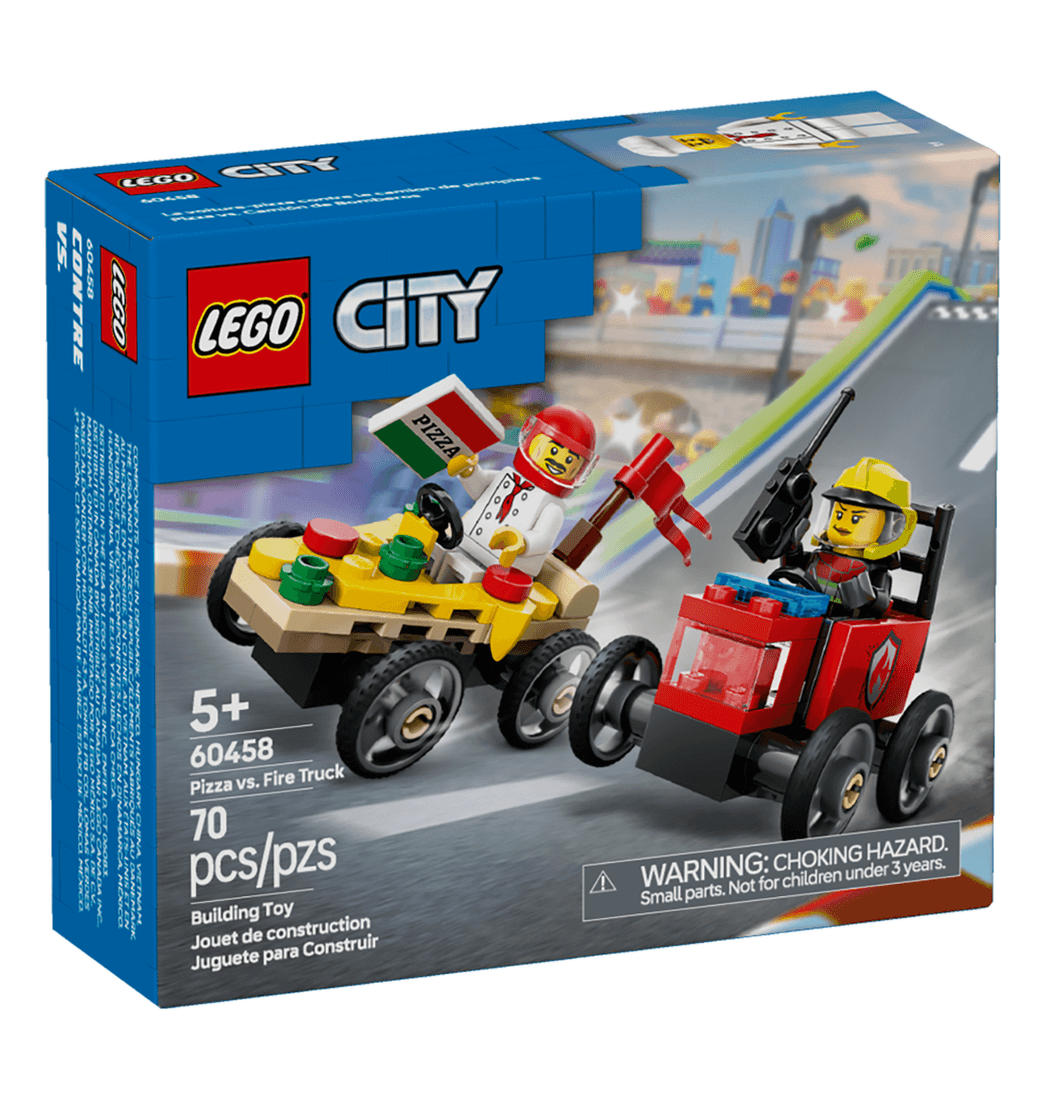 ¡Sorprende a tu pequeño fan de las carreras con el set LEGO City Pack de Coches de Carreras: Pizza vs Camión de Bomberos! Este divertido juguete para niños y niñas cuenta con 2 coches de carreras de juguete y 2 minifiguras. ¿Quién ganará? ¡Toma asiento y vibra con las épicas carreras urbanas!