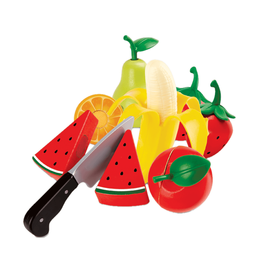 Con este fantástico Set podrás ayudar a acostumbrar a tu pequeño a comer de forma saludable. Incluye un cuchillo de juguete realista, dos fresas, una pera, una naranja, una manzana, con tallos extraíbles y una rodaja de sandía, que los niños pueden cortar con el cuchillo de juguete, además de un plátano que se puede pelar. Sorprende a tu pequeño con este divertido juguete y ¡llévalo ahora!